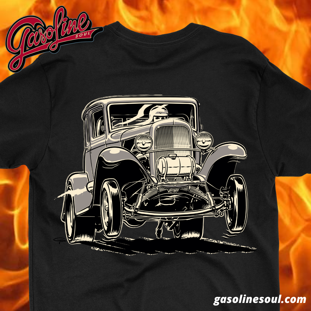 Large WHEELS UP DEUCE graphic on the back and our Gasoline Soul Script logo on the front.
