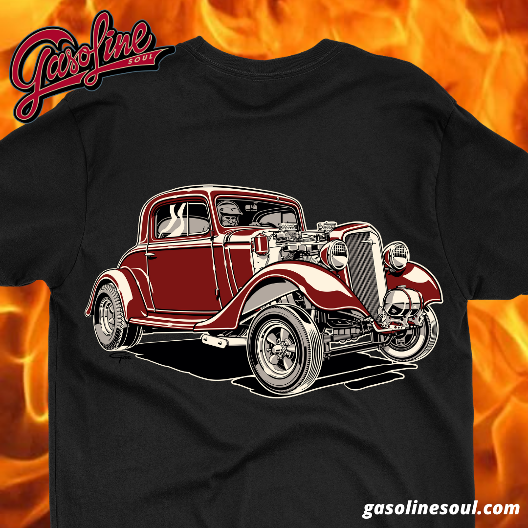 Large THIRTY FIVE COMES ALIVE graphic on the back and our Gasoline Soul Script logo on the front.