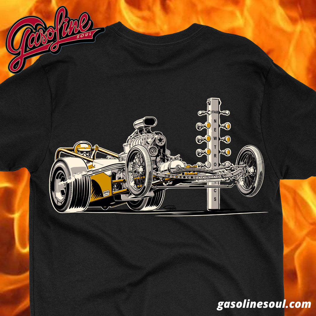 Large SLINGSHOT graphic on the back and our Gasoline Soul Script logo on the front.