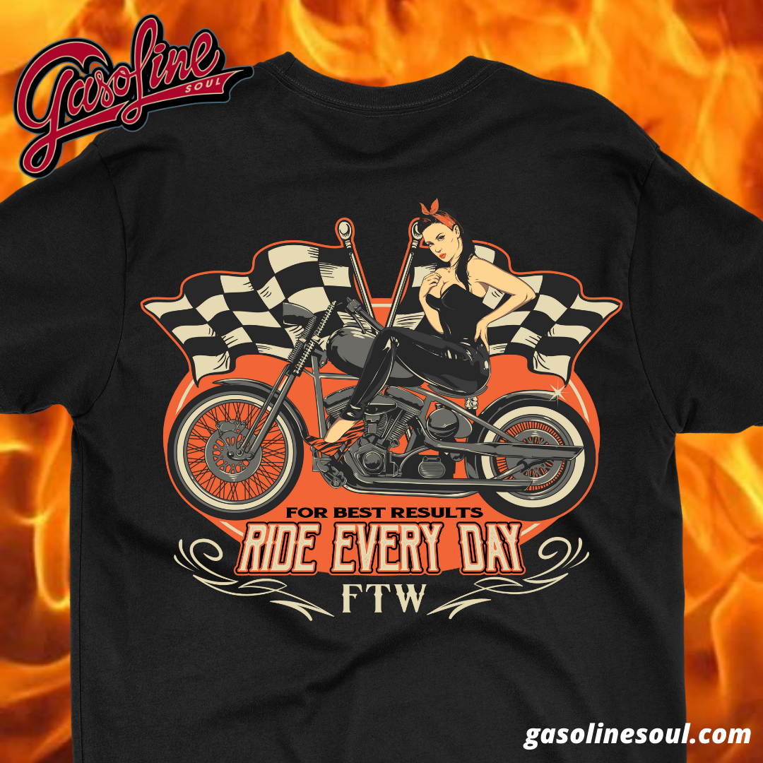 Large FOR BEST RESULTS graphic on the back and our Gasoline Soul Script logo on the front.